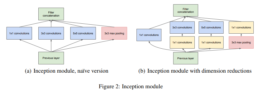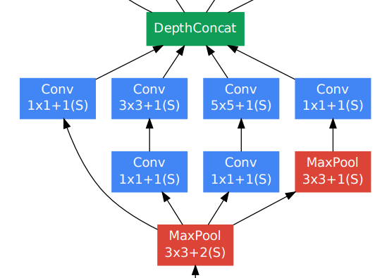 - 5x5 reduce : 5x5 컨볼루션 이전에 사용되는 1x1 필터 수