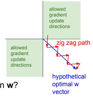 - 아래 그림과 같이 지그재그로 가중치가 업데이트됨 (효율적이지 않음)
