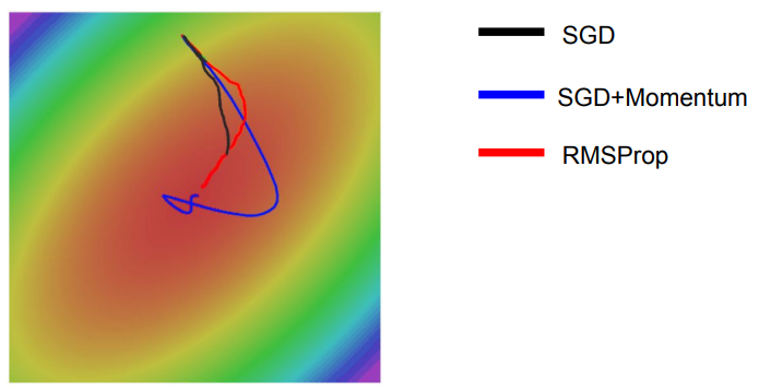 - 작은 gradient를 가진 차원에서는 제곱 값이 작으므로 속도가 상대적으로 빨라지고 큰 gradient를 가진 차원에서는 제곱 값이 크므로 속도가 점점 느려짐