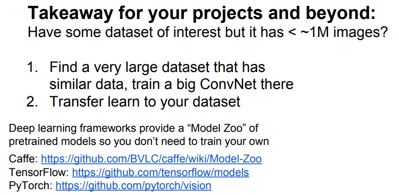 - 이러한 이유로 Caffe, TensorFlow, PyTorch와 같은 대부분의 딥러닝 프레임워크에서 사전 학습된 모델을 제공