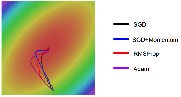 - loss에 민감한 방향으로의 변동은 줄여주고 둔감한 방향으로의 움직임은 증가시키기 때문에 지그재그로 수렴하는 Poor Conditioning 문제를 해결할 수 있음