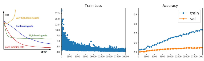 - 그림의 경우 train acc은 높아지는데 val acc은 침체 → 오버피팅