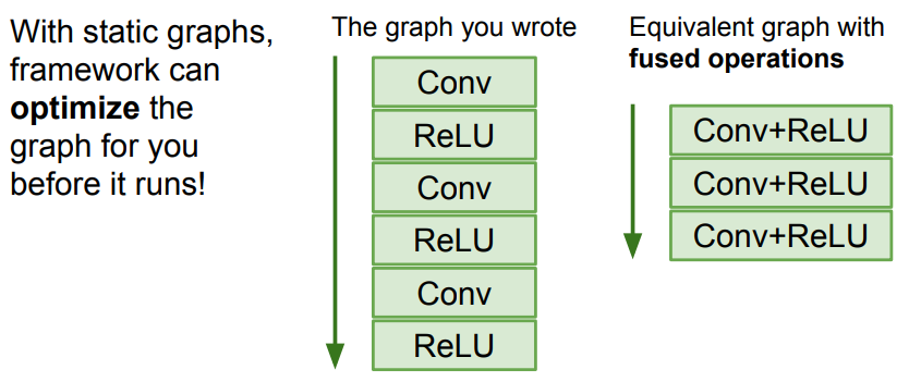 - 한 번 생성된 그래프가 학습 시 반복적으로 사용되므로, 연산을 합치거나 재배열하여 최적화 가능