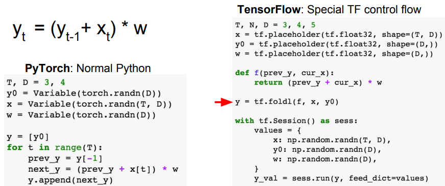 - 그래프를 미리 구성해야 하므로 모든 가능한 control flow를 미리 고려해야 함