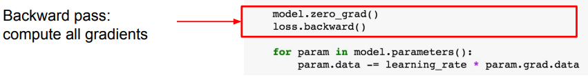 - loss.backward를 호출하면 자동으로 그래디언트가 계산됨