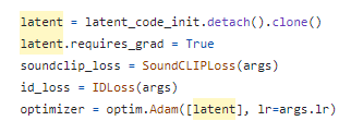 오디오 기반의 잠재 코드 \( w_a \)를 초기에 어떻게 구성하는지에 대한 설명이 제시되어 있지 않아서 추가적으로 코드를 찾아봤다. 해당 논문의 코드는 아직 공개된 것 같지 않아서 직전 논문(Sound-Guided Semantic Image Manipulation)에 대한 코드를 살펴봤는데 그냥 초기에 소스 잠재 코드 \( w_s \)를 복사해서 사용하는 것 같다. GitHub Link