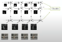 - 그림과 같이 각 프레임으로부터 추출된 conv-feature들에 대해 Multi-layer LSTM을 적용