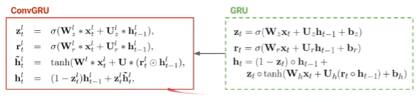 - 기존에 FC 형태였던(행렬곱) Weights (W, U)를 컨볼루션 연산으로 대체