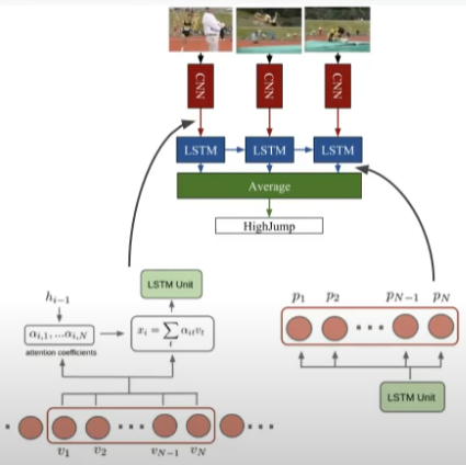 - 사전 학습된 CaffeNet으로 프레임들의 특징을 추출하고 이를 LSTM에 입력