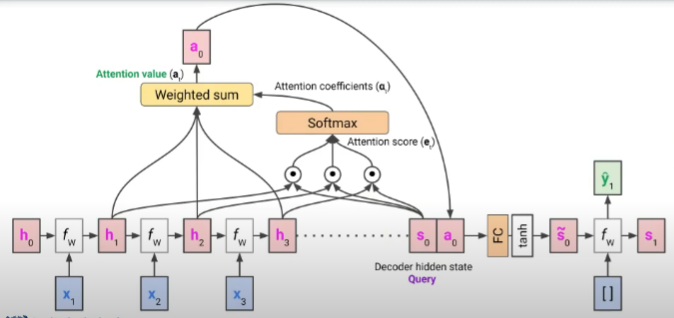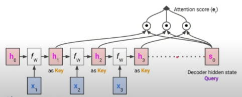 - 그림을 보며 해석해보자면 현재 디코더 hidden state를 Query라고 할 수 있음