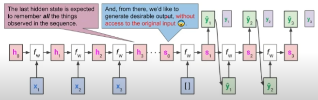 - 이 임베딩이 모든 정보를 담고 있기를 원하지만 실제로는 긴 길이의 시퀀스의 경우 정보 손실이 불가피함