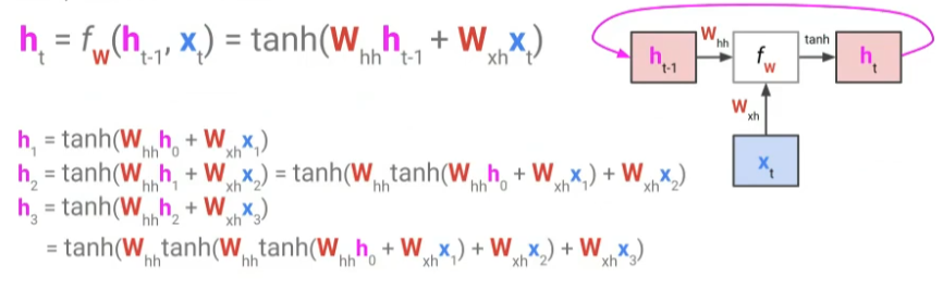 - RNN 또한 마찬가지로 출력은 입력의 가중합으로 표현되고 가중치를 찾는 것이 목적