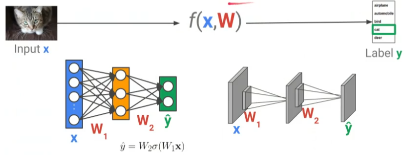 - 입력 x를 레이블 y로 가장 잘 매핑할 수 있는 가중치를 찾는 것