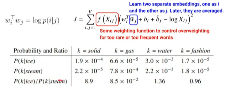 - 두 단어 임베딩이 co-occurrence 비율을 따라가도록 학습