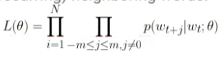 - 수식은 모든 단어들에 대해(i) 주변 단어들(j)에 대한 확률을 모두 곱하는 것을 의미