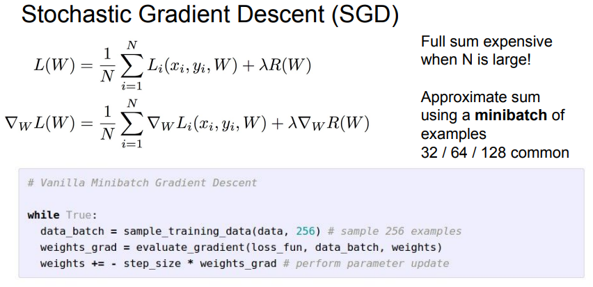 - 트레이닝 샘플의 개수가 매우 많다면, 즉 N이 크다면 이에 대한 Loss와 gradient를 계산하는 것은 매우 오래 걸리는 작업