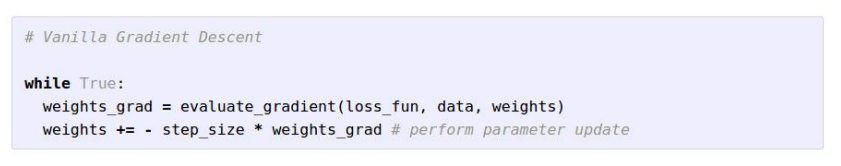 - step size는 learning rate라고도 하며 실제 학습시 가장 중요하고 우선적으로 정해줘야 할 하이퍼파라미터