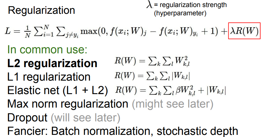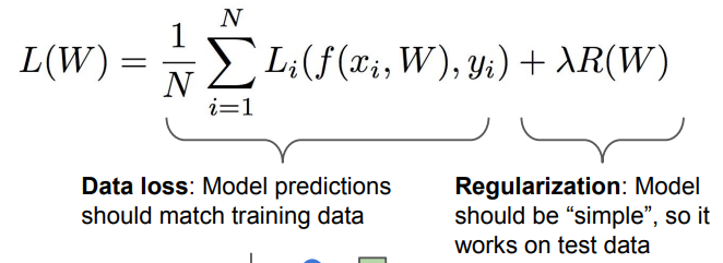 - 최종적으로 손실 함수는 Data loss term과 Regularization term으로 구성