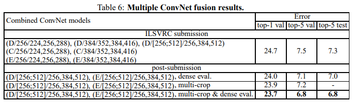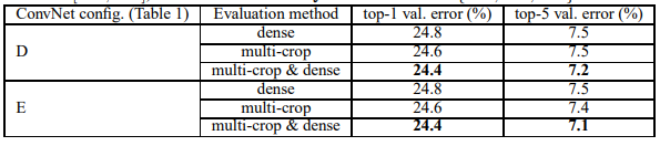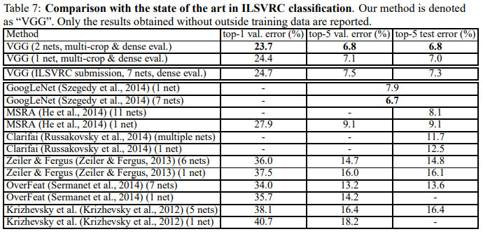 - 추가적으로 B의 3x3 conv layer를 5x5로 변경해서 테스트한 결과 top-1 error가 7% 증가함 → 더 작은 필터가 유리하다는 것을 확인