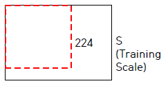- 이때 위의 그림과 같이 리스케일링된 이미지의 더 짧은 변을 S라고 정의 (S >= 224)